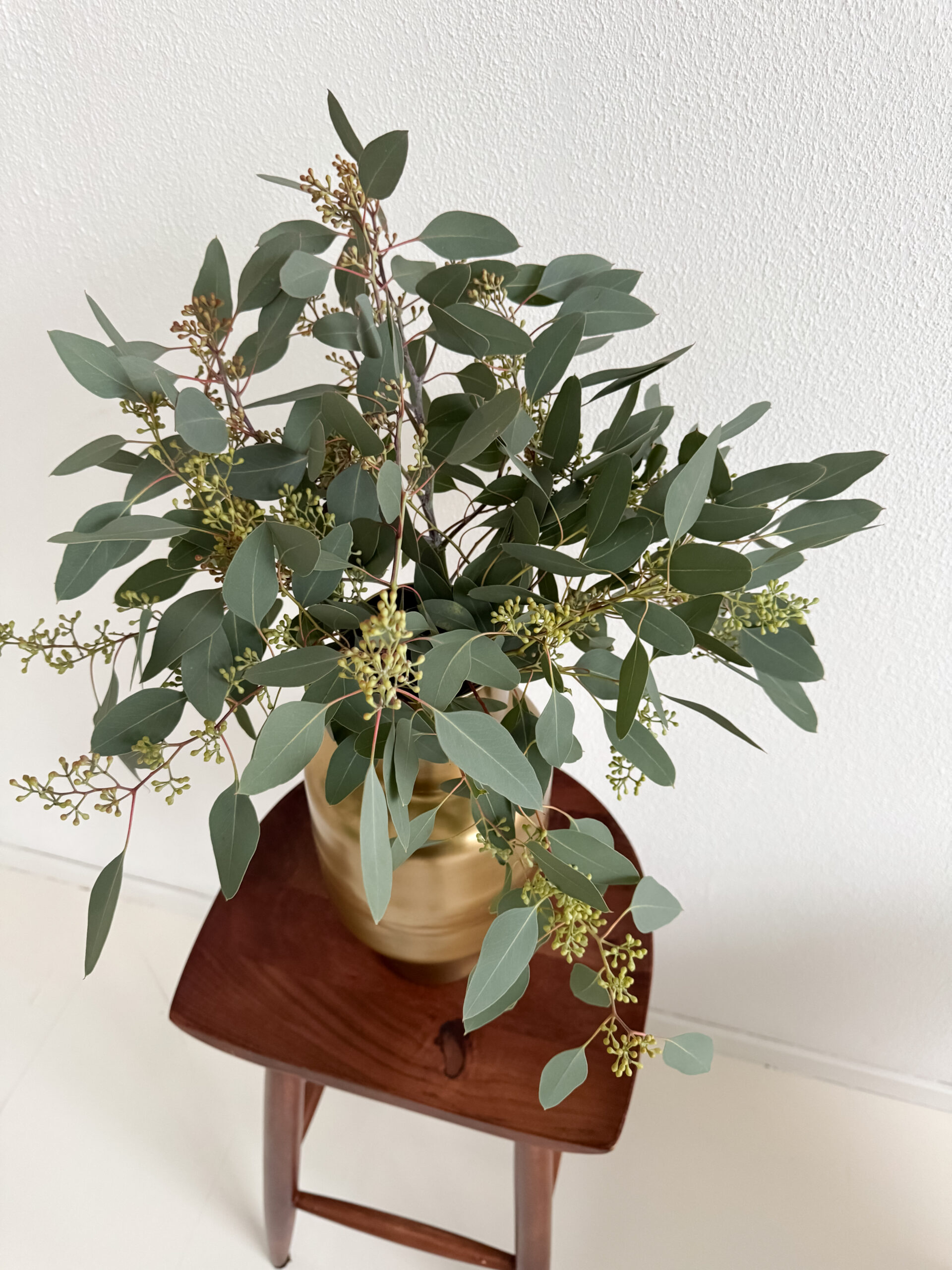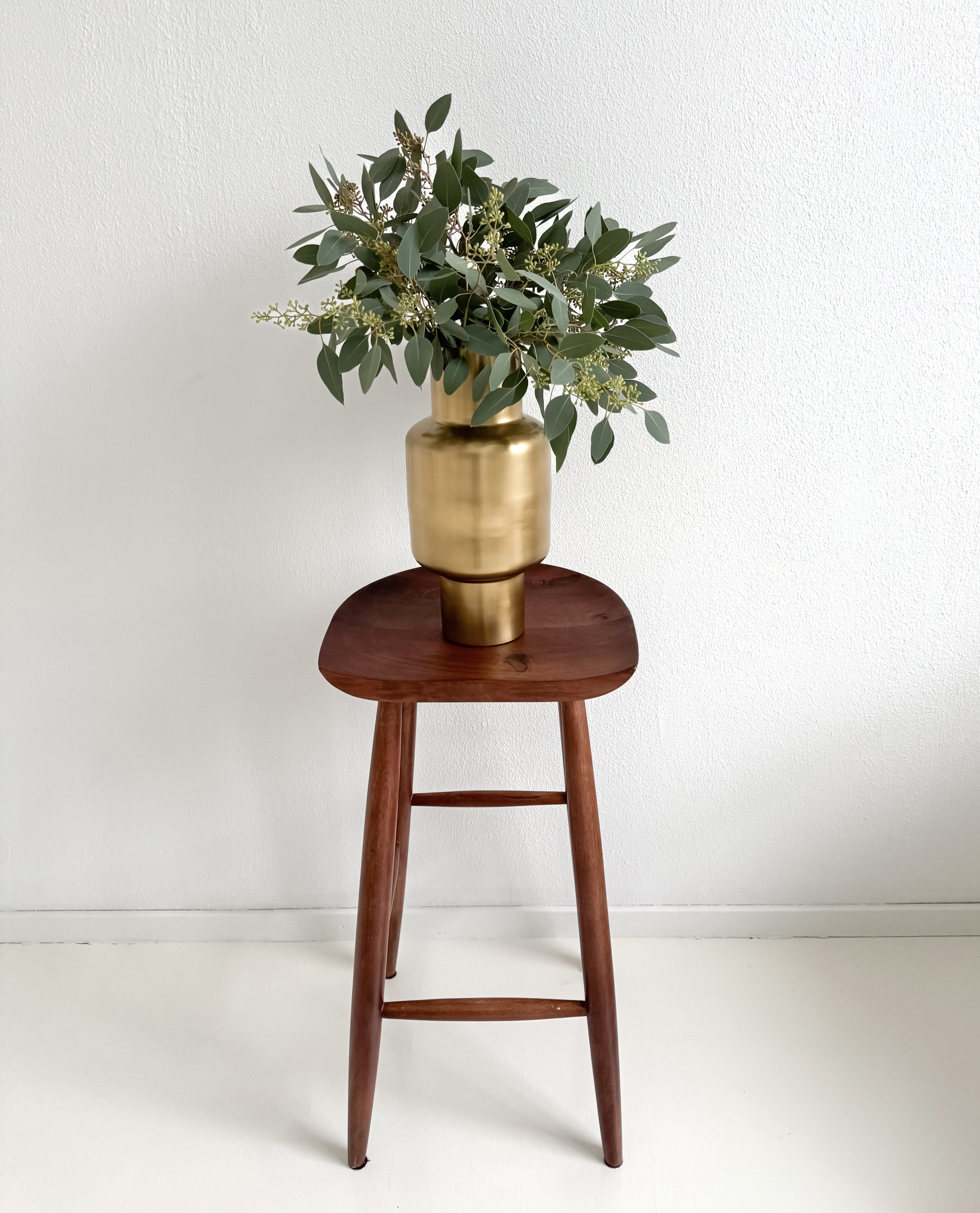 Eukalüptiokstest valmistatud kimp toob ruumi rahuliku ja värske meeleolu. Hallikasrohelised lehed ja õhuline vorm loovad modernse ning looduslähedase koosluse, mis sobib ideaalselt nii kodu kui ka kontori kaunistamiseks.