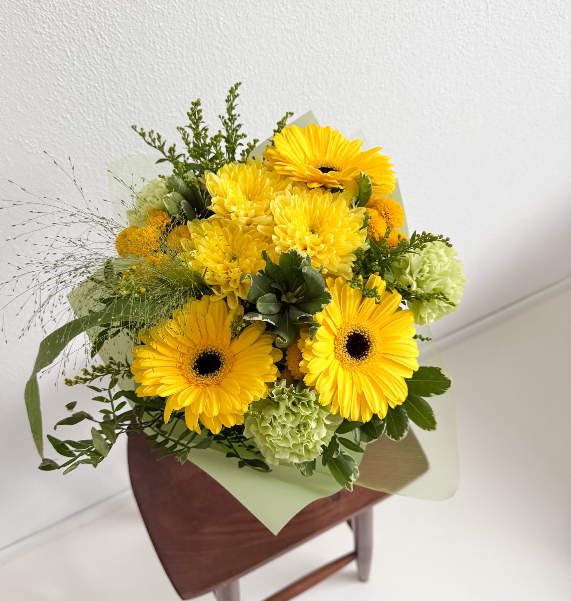Kingi soojust ja head tuju rõõmsa, kollastes toonides lillekimbuga. Päikesekollased õied sümboliseerivad optimismi ja sõprust – justkui väike päikesekiir, mis teeb iga päeva rõõmsamaks. Kimp on kokku seatud kerge ja õhulise tunnetusega, ühendades erinevad kollased varjundid pehmeks ja kauniks tervikuks. Lilled floristi valikul.