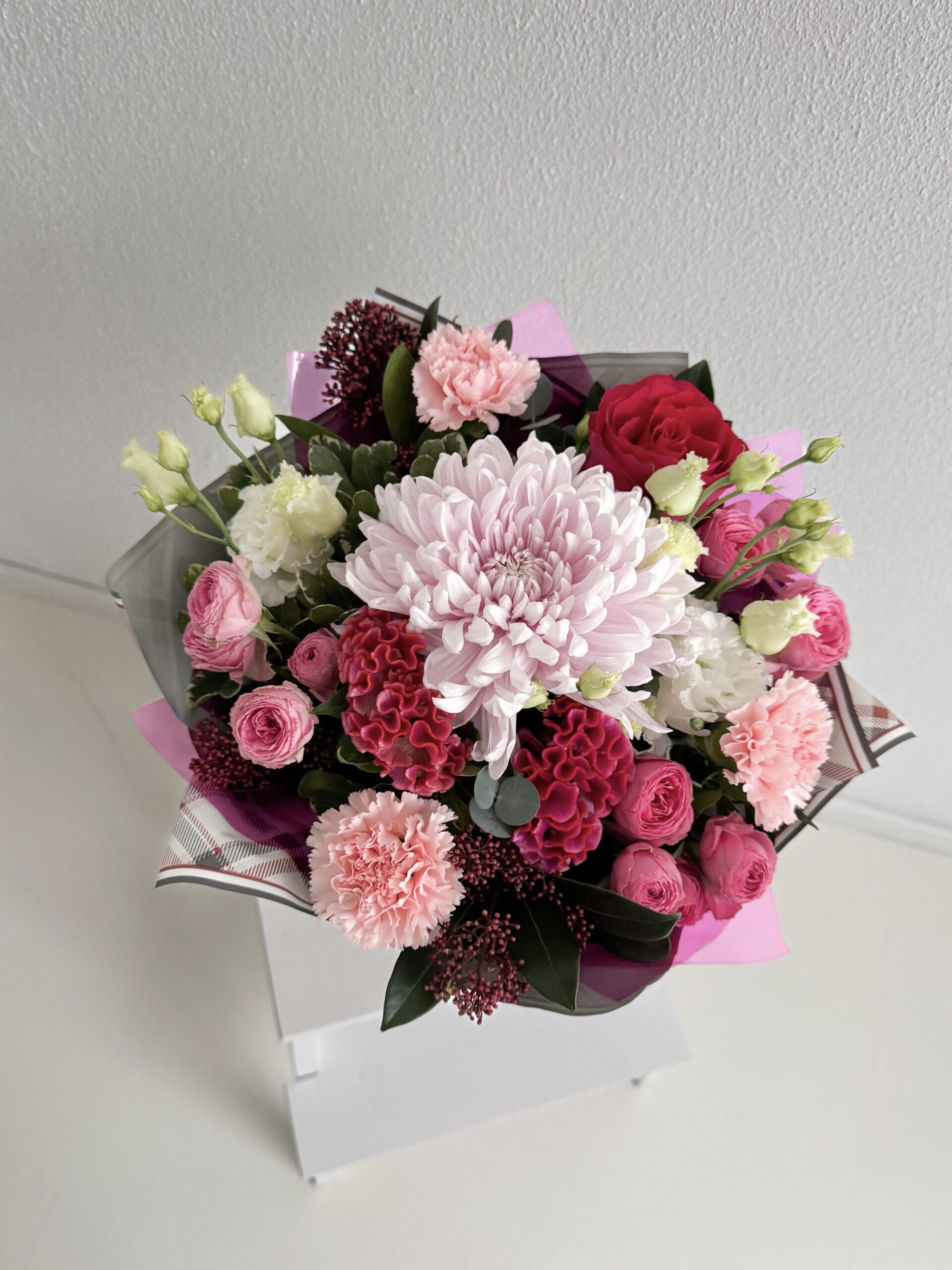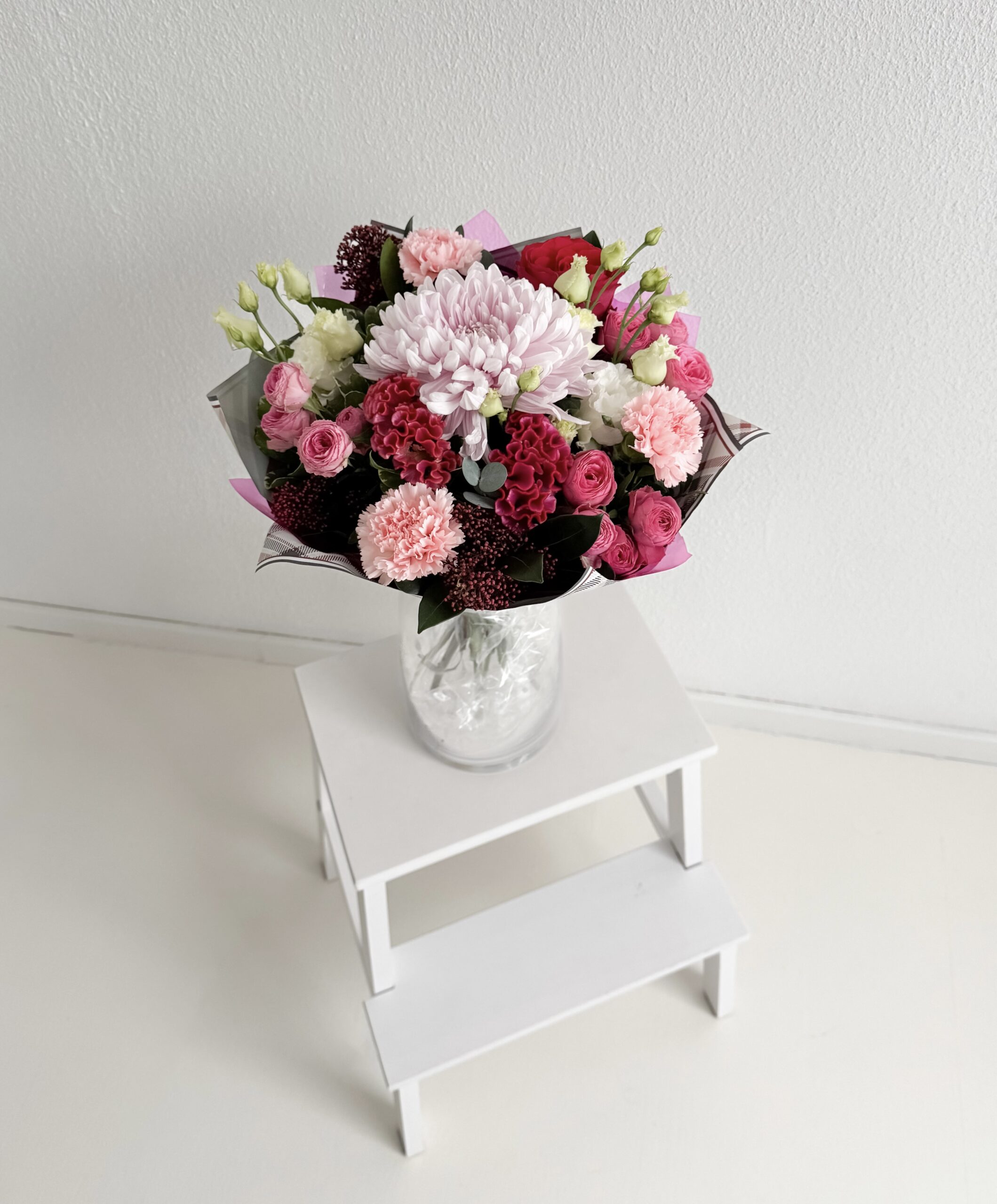 Elegantne lillekimp Anna ühendab endas pehmed roosad varjundid ning sügavamad punased toonid, luues pilkupüüdva ja sooja koosluse. Lopsakas vorm ja värske rohelus annavad kimbule helge ning luksusliku ilme, mis sobib nii eriliste hetkede tähistamiseks kui ka südamlikuks üllatuseks argipäeva. Lilled kimbus floristi valikul.